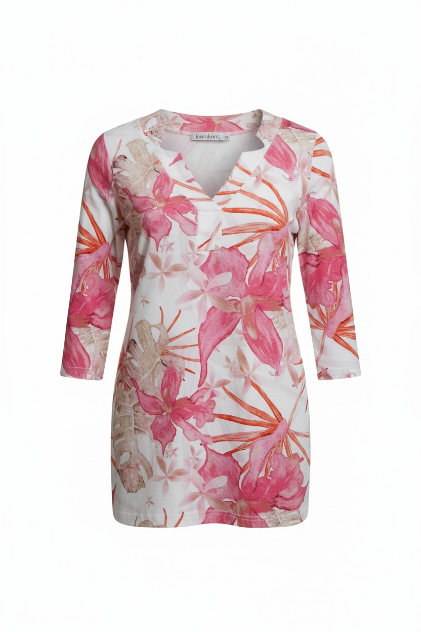 Μπλούζα με 3/4 μανίκι και V λαιμόκοψη.