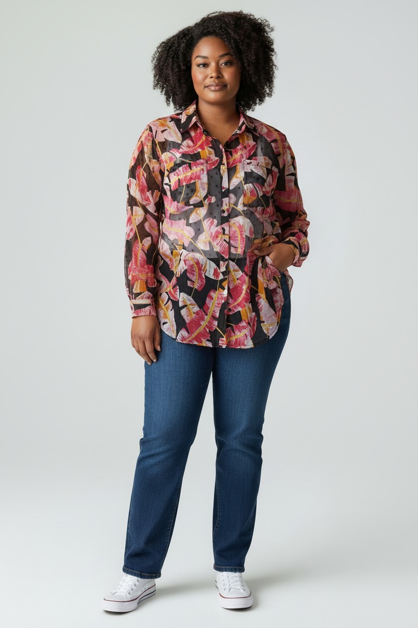 Το φλοράλ μοτίβο σε αποχρώσεις του ροζ και του κόκκινου προσθέτει άνοιξη στο ντύσιμο και τονίζει τη θηλυκότητα, ενώ τα μανίκια 3/4 είναι ιδανικά για να το φοράτε από το πρωί έως το βράδυ. Εξαιτίας της καμπάνα-style γραμμής του, μπορεί να φορεθεί και ως πουκαμίσα αλλά και ως μπλούζα.