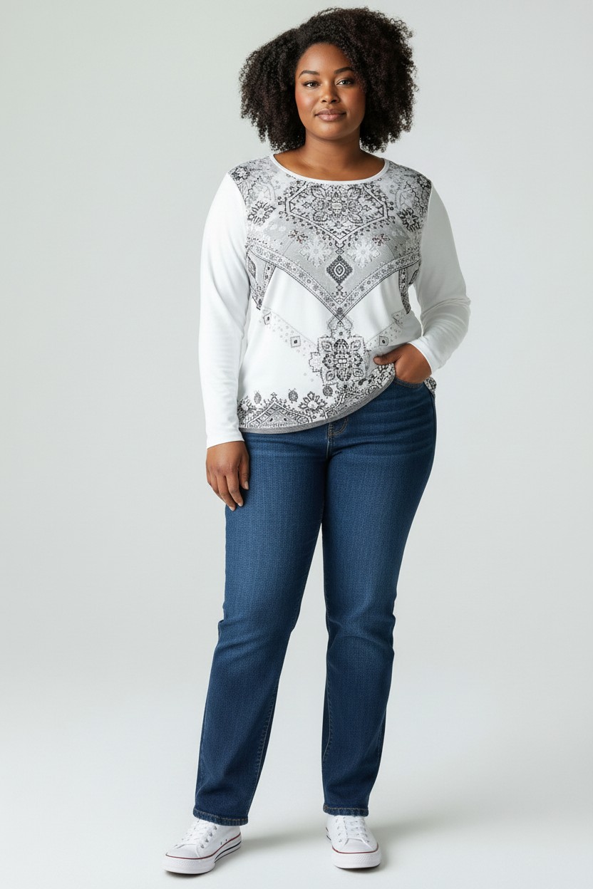 Μακρυμάνικη μπλούζα με μοτίβο στο μπροστινό μέρος.