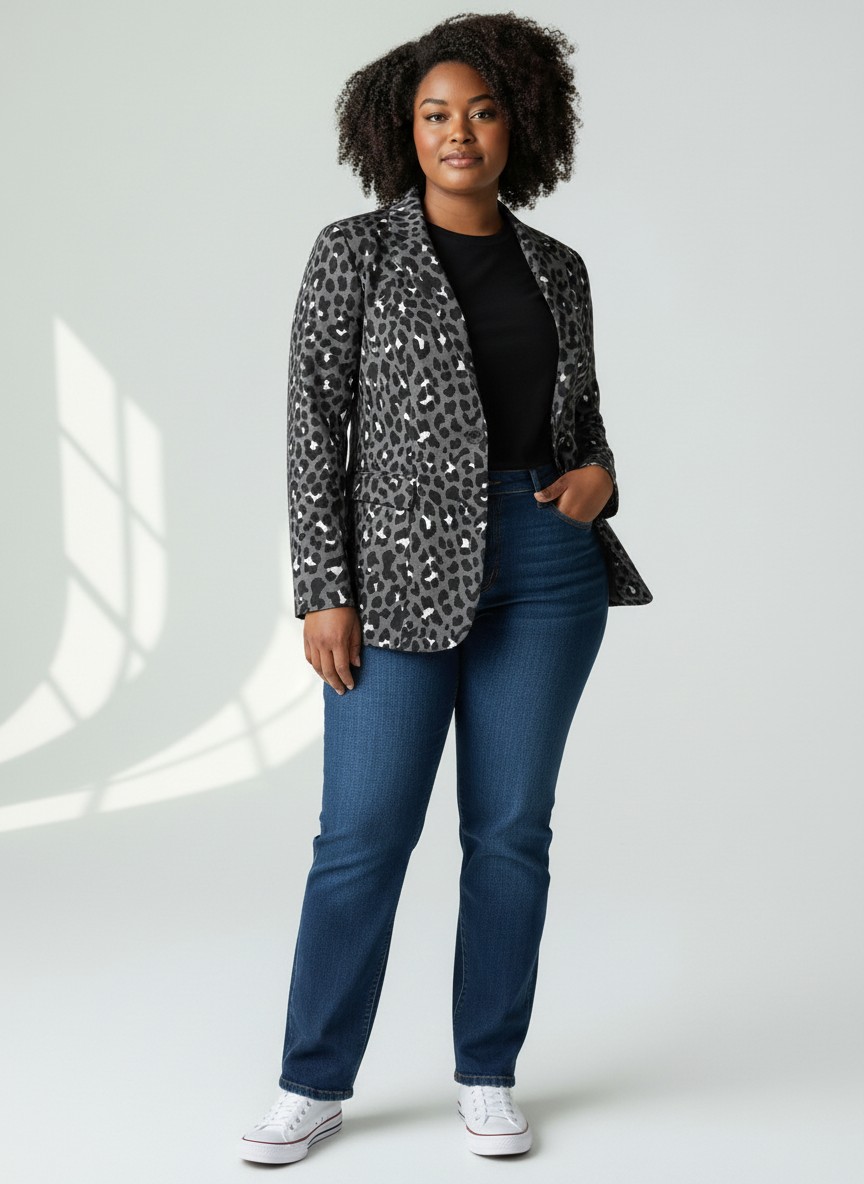Σακάκι με ένα κουμπί και λευκή λεπτομέρεια σε γιακά και μανίκια.
