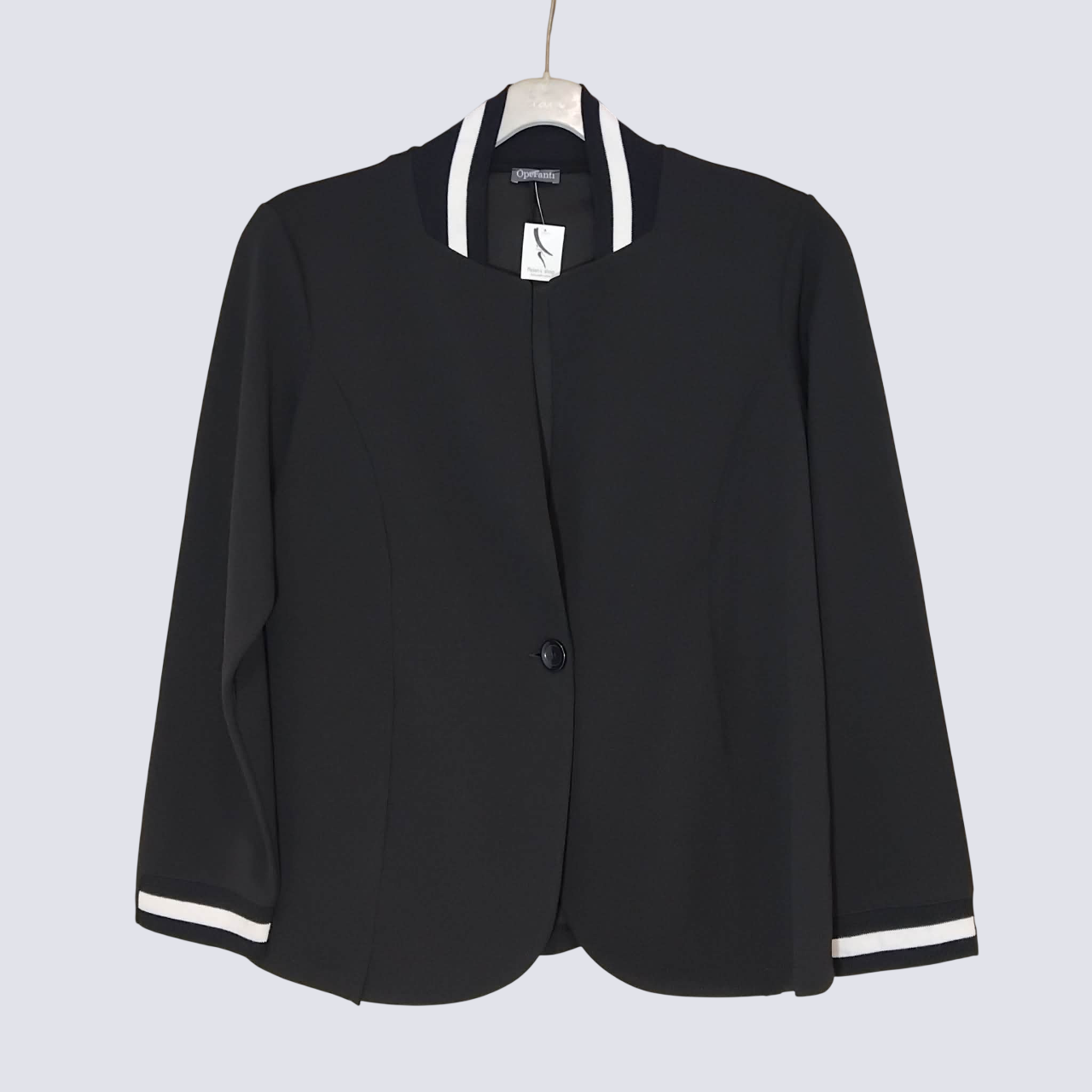 Σακάκι με ένα κουμπί και λευκή λεπτομέρεια σε γιακά και μανίκια.