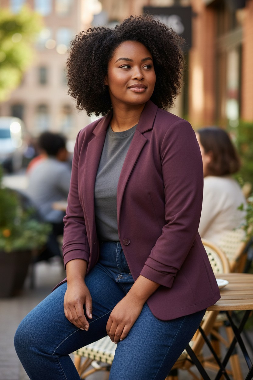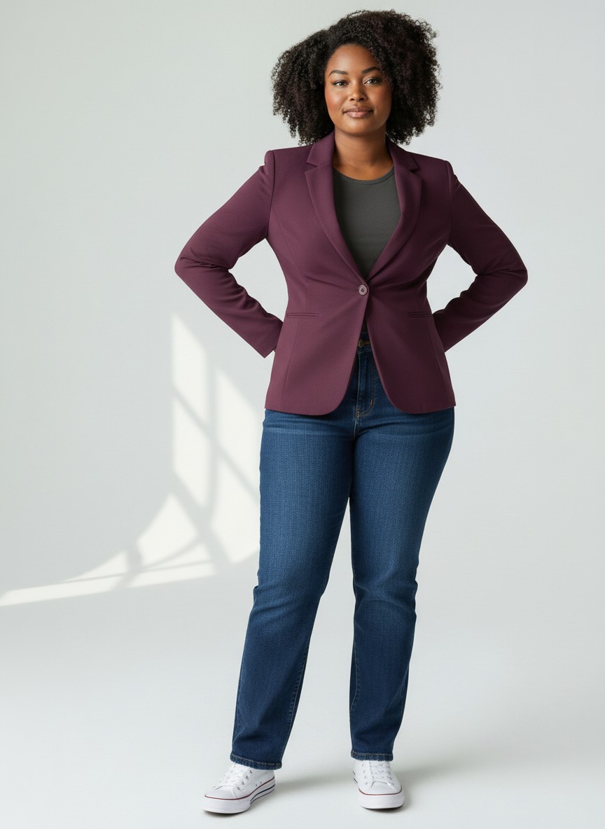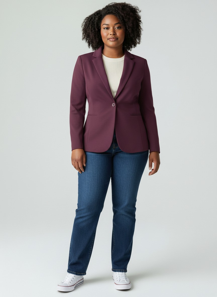 Σακάκι με ένα κουμπί και λευκή λεπτομέρεια σε γιακά και μανίκια.
