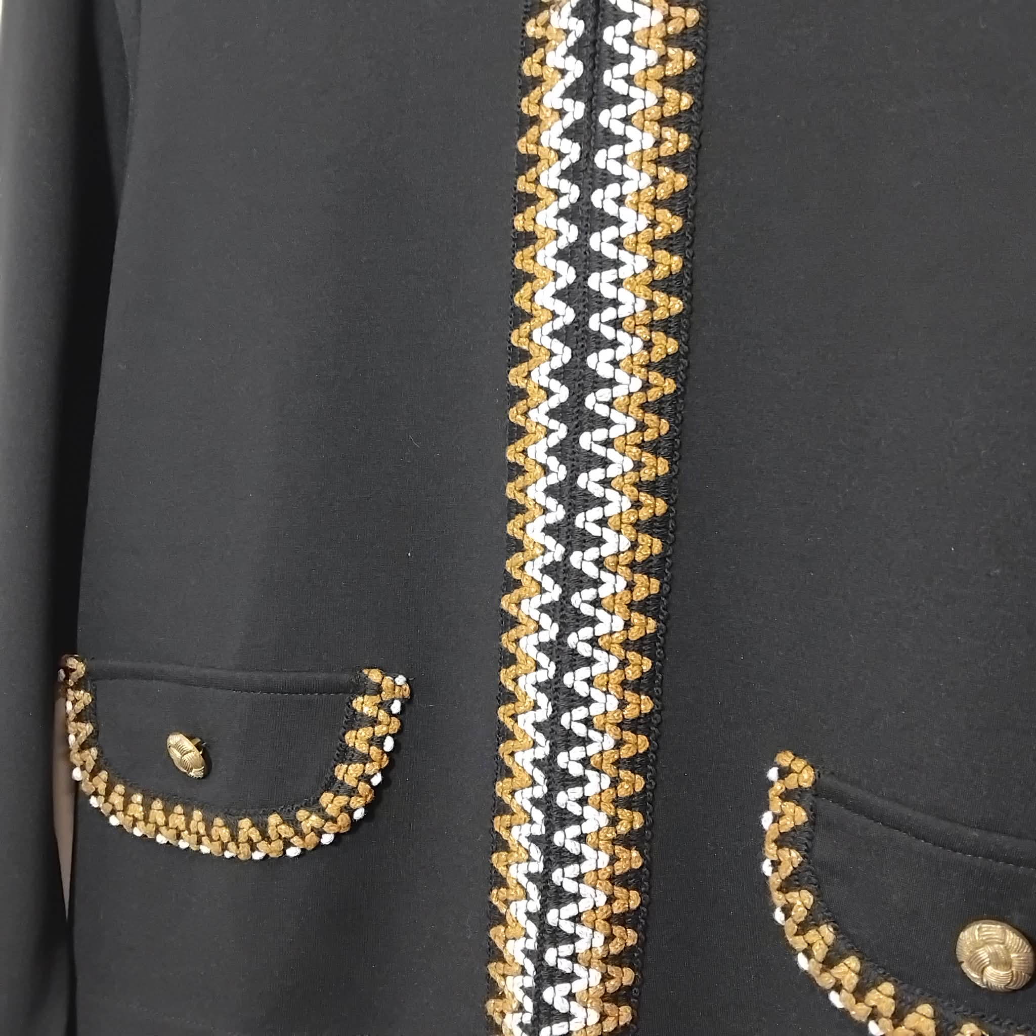 Σακάκι – ζακέτα τύπου Chanel με λεπτομέρειες από χρυσή και λευκή κλωστή και χρυσά κουμπιά.