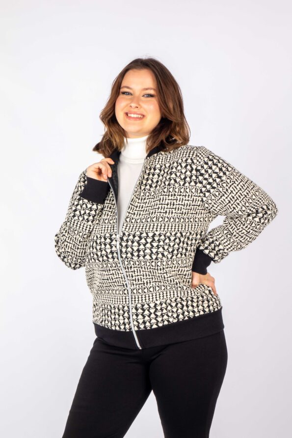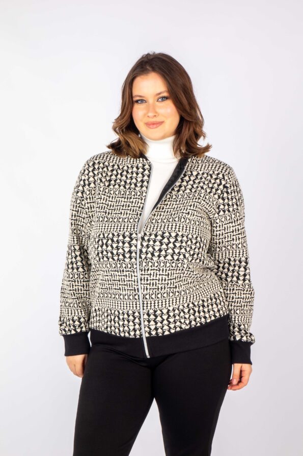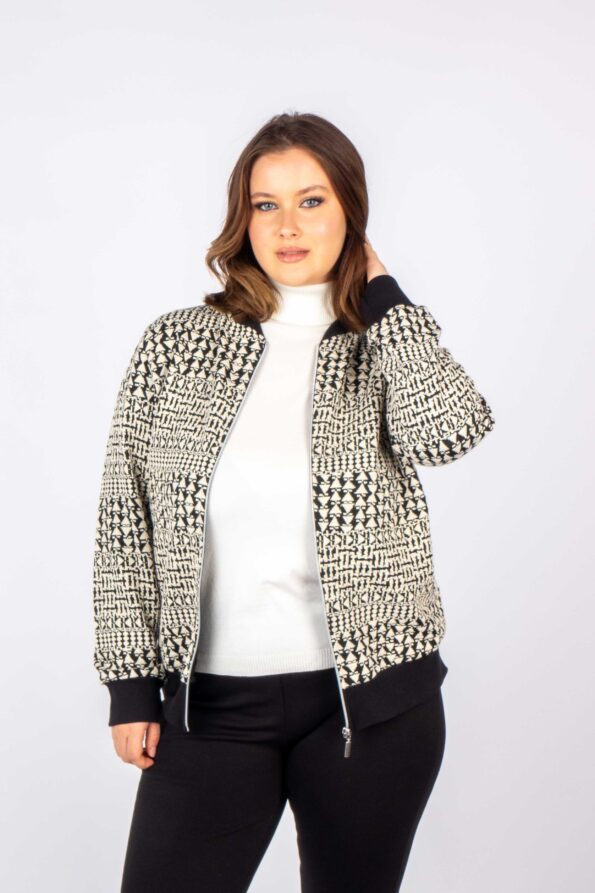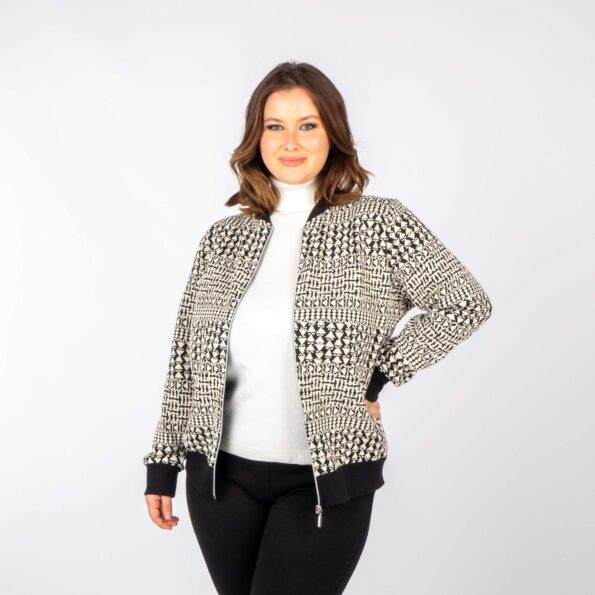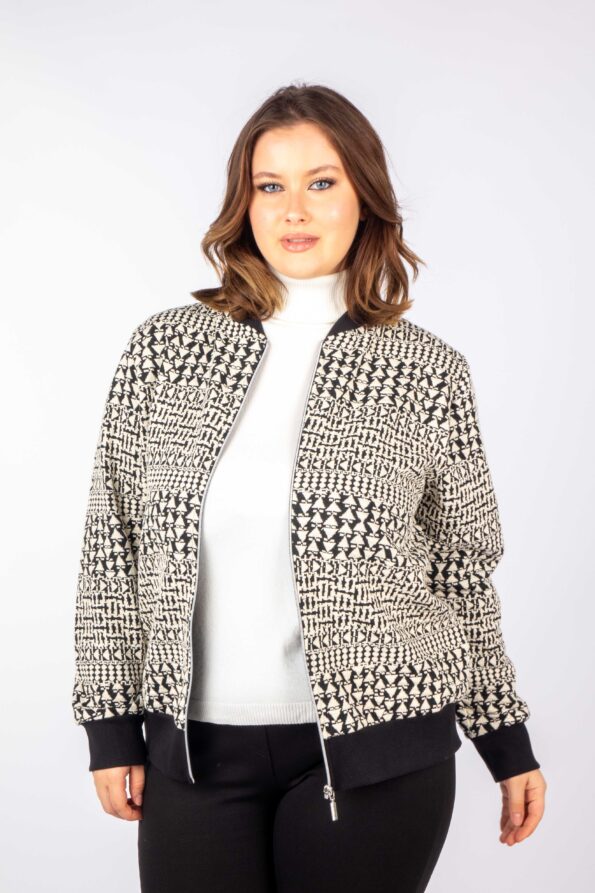 Ζακέτα bomber σε ασπρόμαυρο γεωμετρικό μοτίβο.